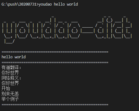比如翻译hello world, 你只需要在终端输入: