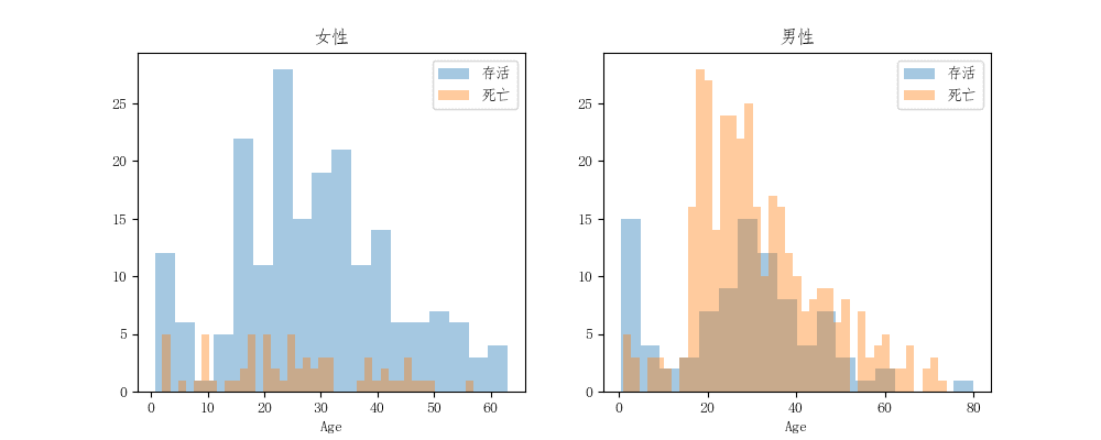 我们可以看到,男性的死亡率其实更高,大体体现了让女性和儿童先逃亡的原则。对于5到18岁的男性而言,存活下来的几率似乎非常低,不过这可能是因为船上这个年龄段的人数少导致的。
