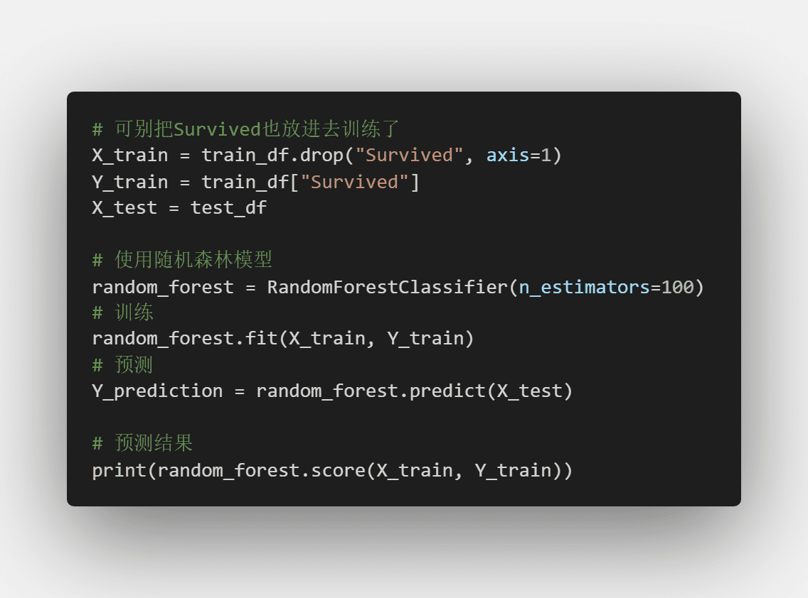 我们使用随机森林模型(说实话如果没有sklearn,这个模型能写到我头秃),关于随机森林的介绍可以看这一篇文章,其实就是解决了决策树的过拟合问题,这篇文章讲得通俗易懂: