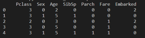 比如我应该会坐二等舱(其实是三等舱,但是想想我都坐泰坦尼克号了为什么不坐二等舱?);Sex为 1 (男性),Age在范围 3 中(老了啊);SibSp是在船兄弟姐妹配偶的数量,Parch是在船父母、儿女数量,由于我可能是一个人出游,这里我们都设为 0,然后票价Fare应该是 2,Embarked随意选0.